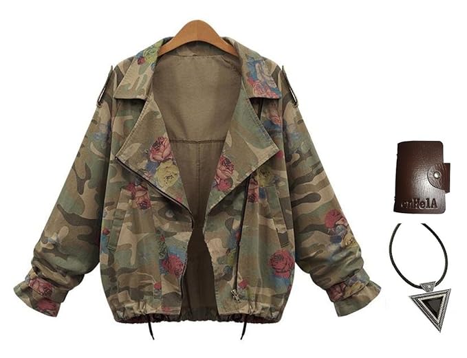 Amazon エンヘルア Enhela ミリタリー ジャケット ブルゾン アウター コート 迷彩 柄 コー デ ディ ネート カジュアル レディース 大きい サイズ 着こなし 全部で3つセット コート ジャケット 通販