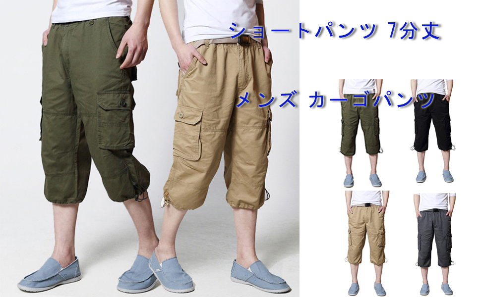 Amazon ショートパンツ メンズ 7分丈 カーゴパンツ 太め クロップドパンツ ミリタリー 半ズボン ひざ下 パンツ 無地 ゆったり コットン ズボン ゆったり 綿 春夏秋 3xl ショートパンツ 通販