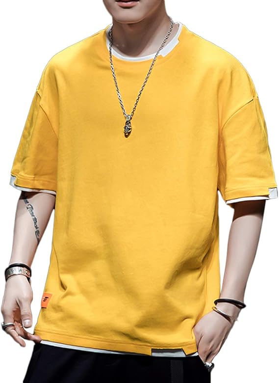 Amazon Tシャツ メンズ 重ね着 ゆったり 無地 綿 半袖 レイヤード ビッグシルエット おしゃれ 柔らかい 五分袖 大きいサイズ Tシャツ カットソー 通販