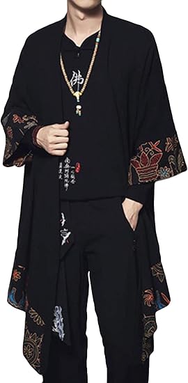 Amazon Mengfanメンズ カーディガン 羽織 七分袖 薄手 春 夏 綿 リネン コーディネート おしゃれ 長袖コート ゆったり ブラック ハンサム カッコイイ 綿麻 日焼け止め ロング コート カーディガン 通販