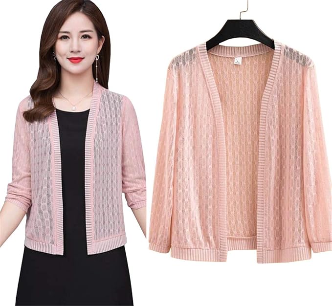 Amazon ユリカー カーディガン レディース 上品 七分袖 透かし彫り ゆったり 紫外線 防止 冷房対策 ショートコート カジュアル 可愛い 大きいサイズ コーディネート カーディガン ボレロ 通販