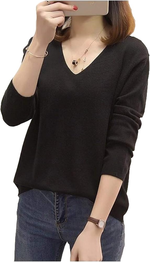 Mua もえみ Vネック ニット レディース トップス セーター 肩出しネック インナー Tシャツ 黒 冬 ゆったり 柔らか 清楚 防寒 仕事 仕事服 会社 専門 事務服 女性 ニットセーター カシミヤ プルオーバー ニットトップス カジュアル リブニット 無地 長袖 春秋冬