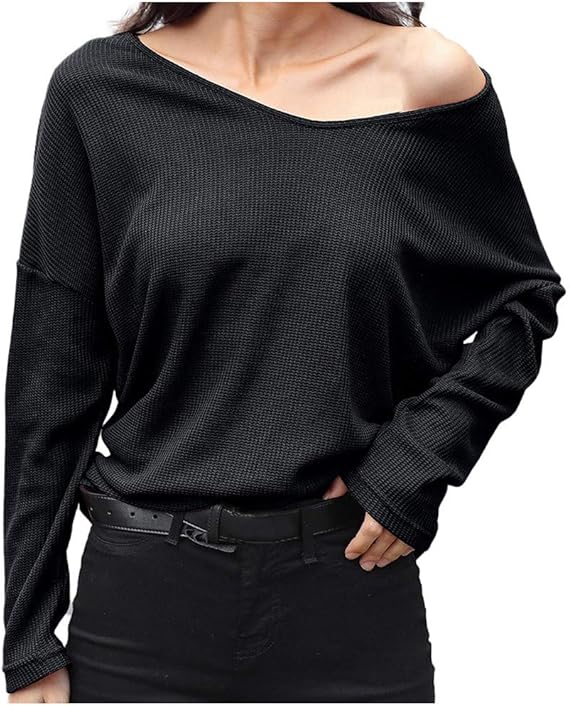 Amazon レディース 肩出しセーター セクシー トップス 長袖 無地 ブラウス おしゃれ シャツ ラウンドネック 秋 冬 プルオーバー トレーナー ス 快適 カジュアル ファッション パンク 原宿 ブルー 赤色 魅力なニット セーター セーター 通販