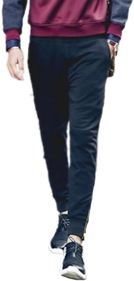 Amazon 春秋 斬新 デザイン アメカジ ズボン ジャージのような雰囲気 運動 外出 足首チャック式 おしゃれアイテム 選べる3サイズ M L Xl 限定 巾着袋付き L ネイビー ロングパンツ 通販