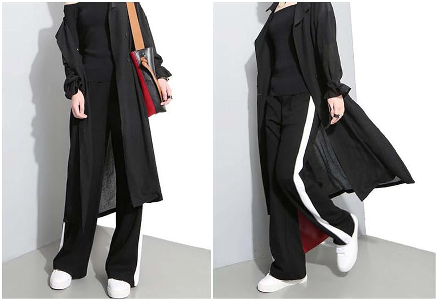ラインひとつでストリート感 ワイドパンツ ハズしの新定番 ジャージみたいなライン入りのスウェットパンツ サイドスリット 入り レディース ボトムス ズボン パンツ スリットパンツ スウェット スエット ライン ゆったり サイドライン スリットスウ