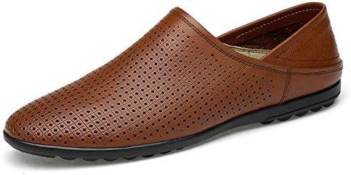 メンズファッションオックスフォードシューズ 本革のドレスウェディングファッションローファーフリースアンチスリップフラットスリップオンラウンドトウを裏地のために男性通気穴があいたビジネスカジュアルシューズ カジュアルオックスフォードシューズ Color Black