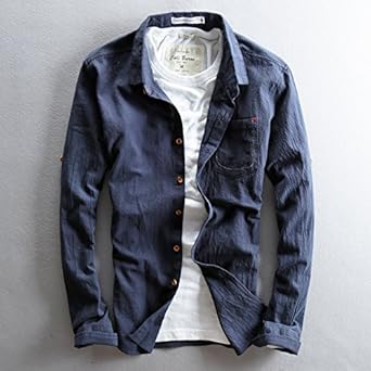 Amazon Co Jp 綿麻シャツ リネンシャツ メンズ 白シャツ 長袖シャツ 麻 コットン 綿 無地 シワ加工 春夏 夏物 夏着大きいサイズ St06 ネイビー Xl ホビー