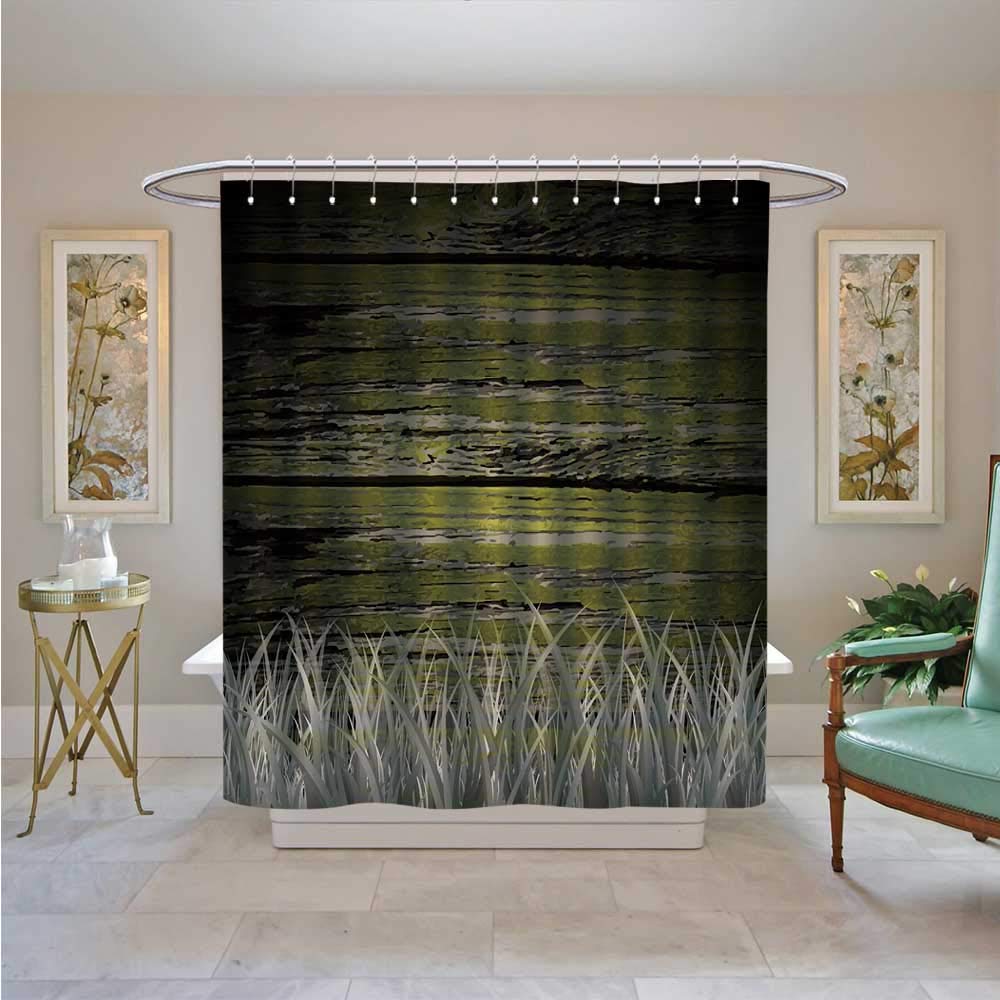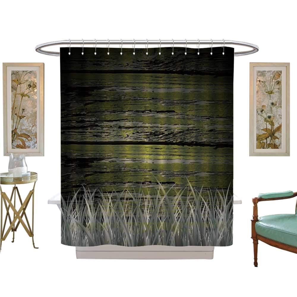 洗濯可 浴室 サテン生地 厚い草の成長 素朴な木 西洋風 アメリカンスタイル アンティークオールドプランク デジタルプリント シャワーカーテン Luvoluxhome 幅36 W72 カラー12 B07kb4jjw7 L96 X W72 長さ72 X シャワーカーテン Www Pulautahfidz Org