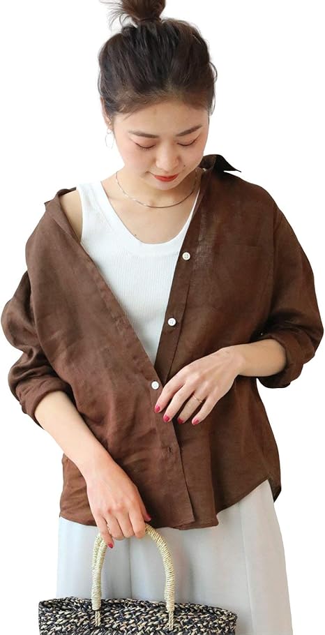 Amazon ジャーナルスタンダード レリューム No 66 フレンチリネンシャツ フリー ブラウン シャツ ブラウス 通販