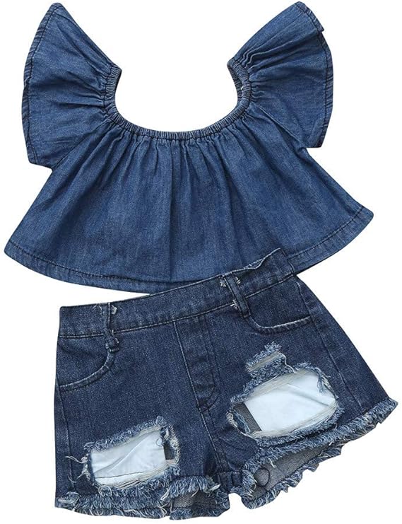 Amazon ベビー服 女の子 Tシャツ デニム ショートパンツ セット オフショルダー 花柄 刺繍 トップス デニム ハーフパンツ 子供服 上下セット 子ども シャツ 短パン セットアップ 韓国風 可愛い 夏服 2点セット 旅行 七五三 通園 通学 お祝い ギフト シャツ