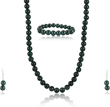 Amazon Co Jp グリーン エメラルド カラー クォーツ ネックレス セット イヤリング ブレスレット付き グリーン デイリーパーティー オフィス カジュアル ウェディング ジュエリー ガールズ レディース ホーム キッチン