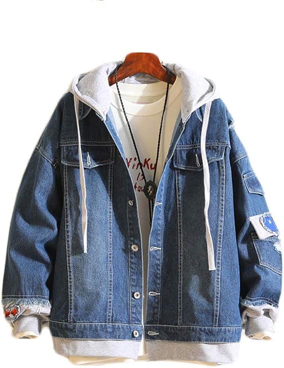 Amazon ユリカー スタジャン メンズ ジージャン Gジャン デニム フード付き 長袖 レイヤード フェイク カジュアル 秋 ゆったり ジャンパー コーディネート コート ジャケット 通販